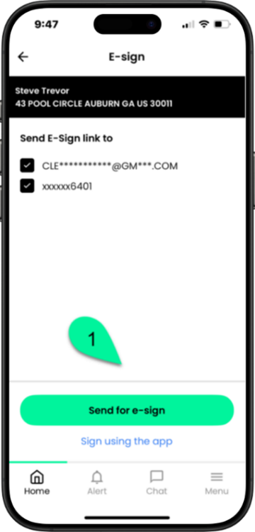 - Select either mobile number or email and tap Send for E-sign