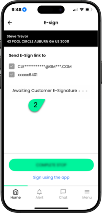 3. Once the consumer has signed, you will tap Complete Stop