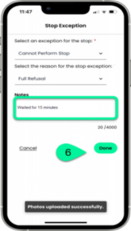 - On the stop screen, tap Won’t perform